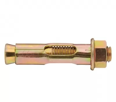 Конструкция анкерного болта состоит: из распорной шпильки с конусным наконечником с одной стороны и резьбовым хвостовиком с другой. Распорным элементом служит защитная втулка с цанговыми прорезями со стороны хвостовика.