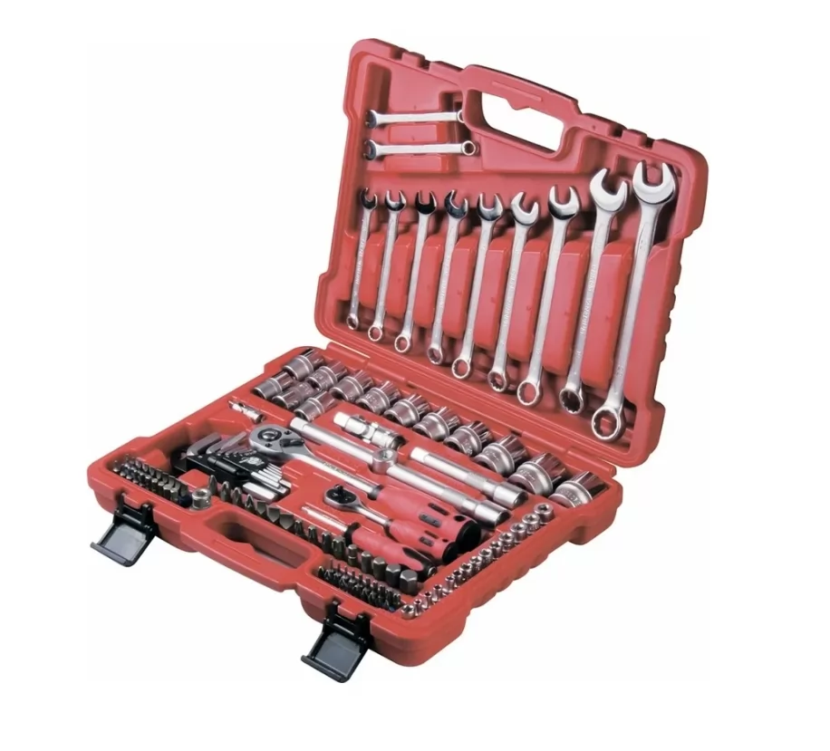 Включает карданные шарниры, упрощающие работу с труднодоступными крепежами. Набор будет полезен в авторемонтной мастерской, пригодится также и в быту.